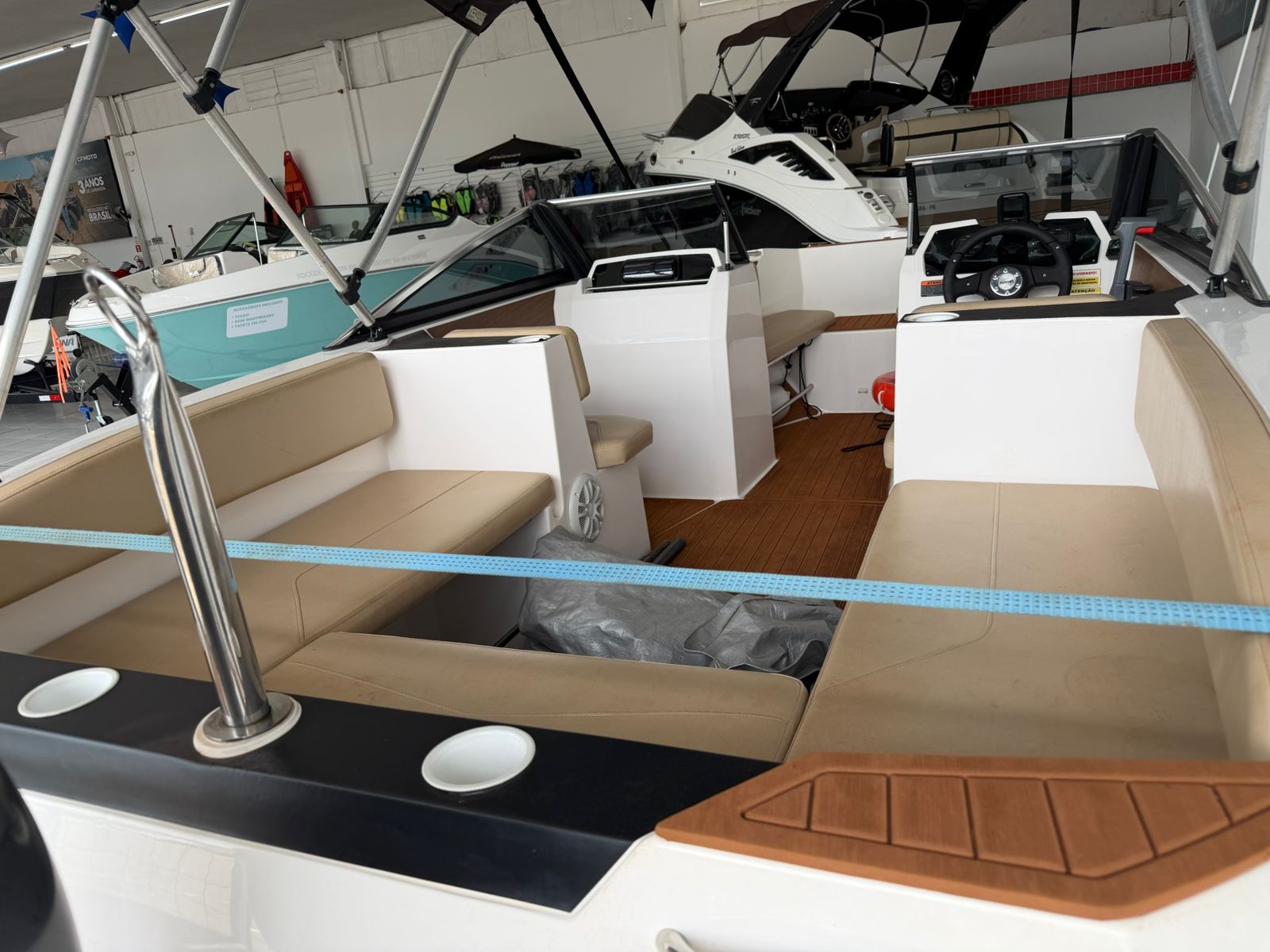 Sistema de som integrado com Bluetooth e 6 alto-falantes / Rádio VHF / Toldo / Tapete de EVA / 2 Defensas Luz de cortesia / GPS Sonar GARMIN 4 / Torre de Wake