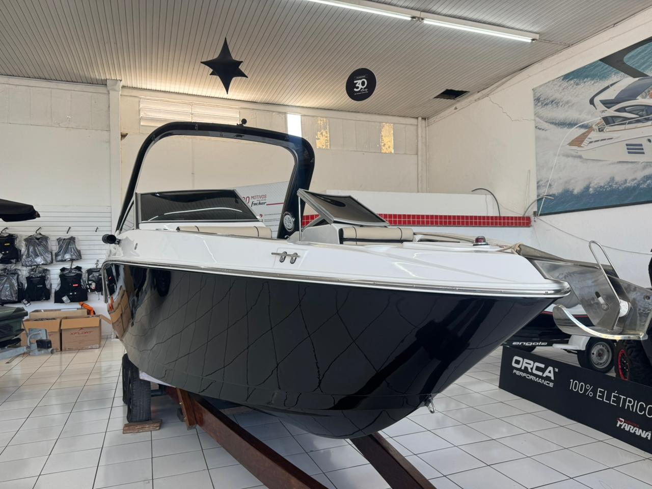 Carreta de encalhe madeira / Toldo tapete eva / Sonar com gps garmin stricker 4 / Sistema de som com 4 alto falantes marinizados / cristaleira / Ancora
